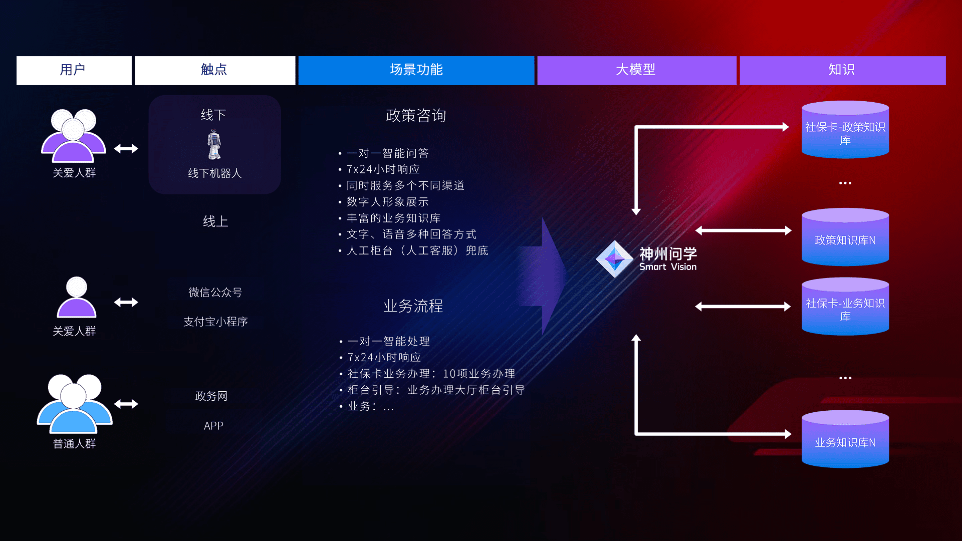 • 线上线下全覆盖:线上提供微信公众号、、、支付宝小程序、、、、政务网、、、app多种渠道,,,,与线下机器人形成完整服务体系。。。
